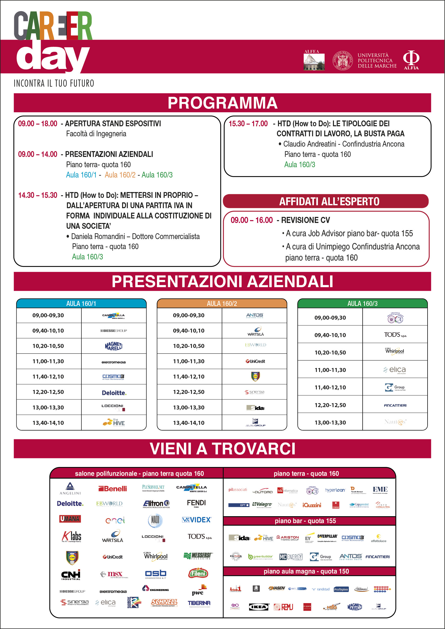 La 3° edizione del “CAREER DAY- Incontra il tuo futuro” si terrà l’11 maggio 2016 presso la Facoltà di Ingegneria, al polo Monte Dago, dalle ore 9 alle ore 18.